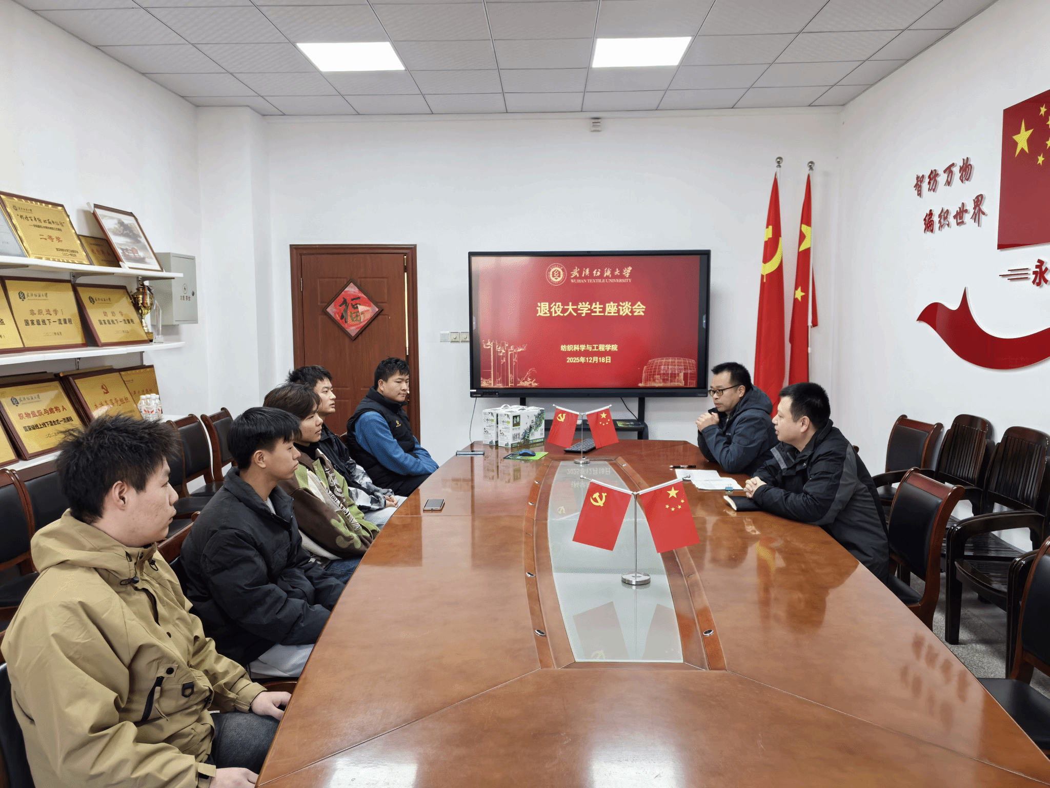 退役大学生座谈会在8H506举行。学院党委副书记赵亮、2025年秋季退伍大学生及拟2026年入伍的大四学生代表参加座谈会。会议由学院征兵专项联络员梁祥云主持。