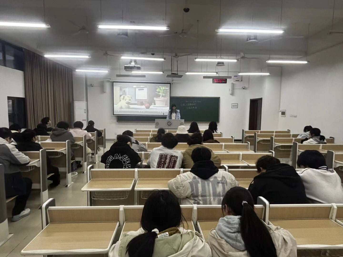 班会围绕“3·25善爱我”阳光心理健康月主题,组织学生观看了《接纳不完美的自己才是真的完美》《Some Thing》两部动画短片,引导学生认识精神内耗的表现与成因,学习自我调节的方法。辅导员、班主任老师结合短片内容,介绍了“5分钟叫停法”“写下烦恼丢一边”“每天夸夸自己”等实用技巧,鼓励学生在面对压力时学会接纳自我、合理调节,营造积极健康的心理状态。